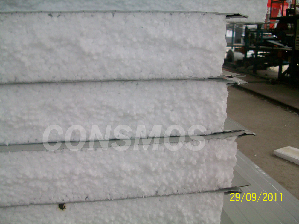 Features of Consmos EPS Sandwich Panel: heat preserving, heat insulation, water proof, fire proof, light weight, easy to construction, durable, high strength, environment protection