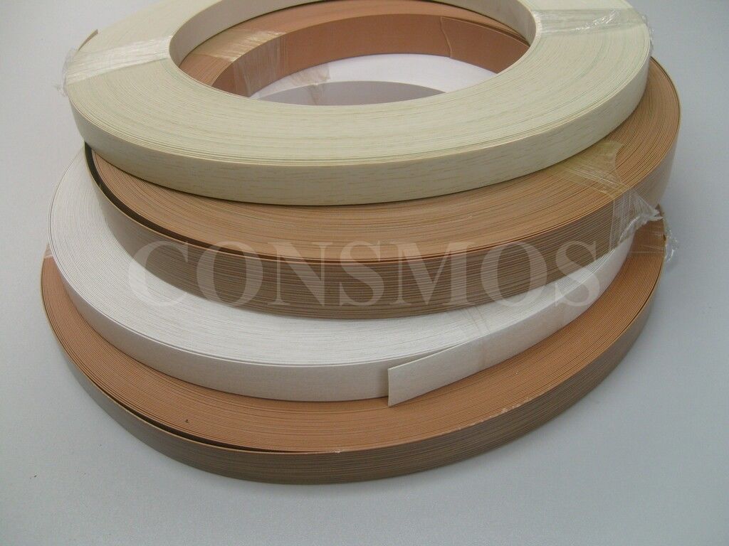 Consmos PVC edge-banding tapes are manufactured with prime quality PVC raw material through advanced technology. The back of the tape can be pre-glued with hot melt glue or just primed.